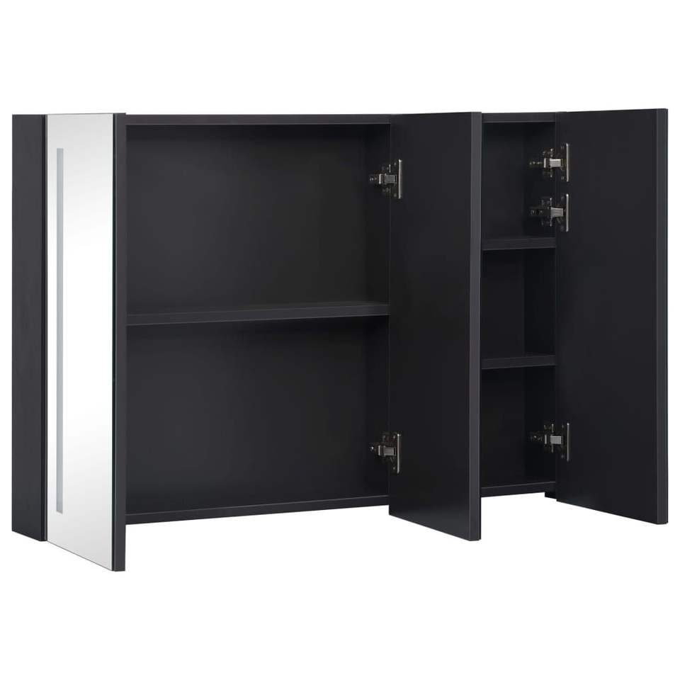Mobile da Bagno in MDF Antracite con Specchio LED, Finitura in Melamina e Frontale in Vetro Medio