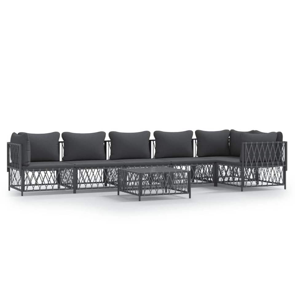 Anthracite Steel 7-Piece Patio Lounge Set with Cushions Garden Sets