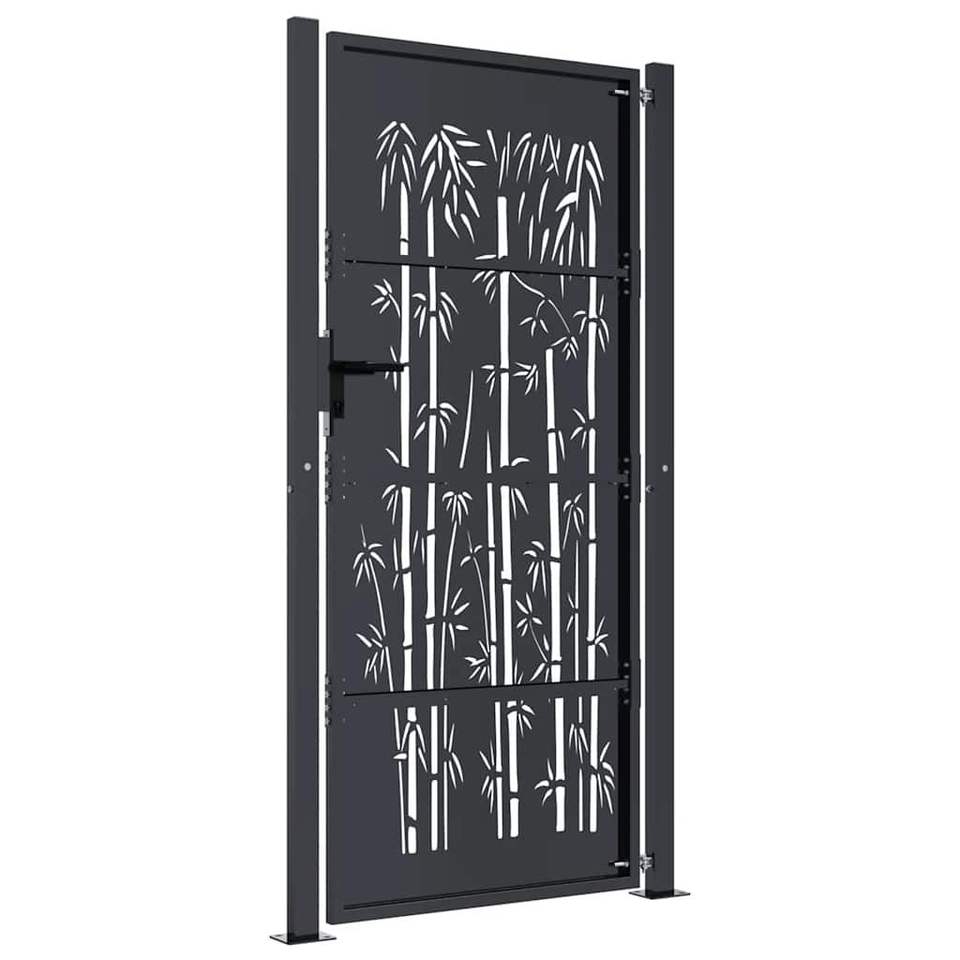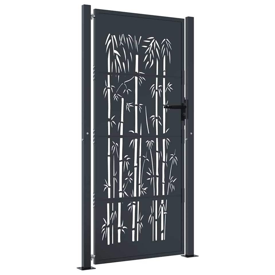 Cancello da Giardino in Acciaio Antracite con Design Bambù 100x200 cm - Recinzioni e Cancelli