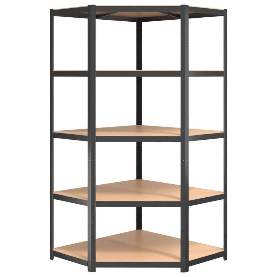 Mensola in acciaio antracite e legno ingegnerizzato da parete e da esposizione a 5 strati con 2 pezzi resistente ed elegante