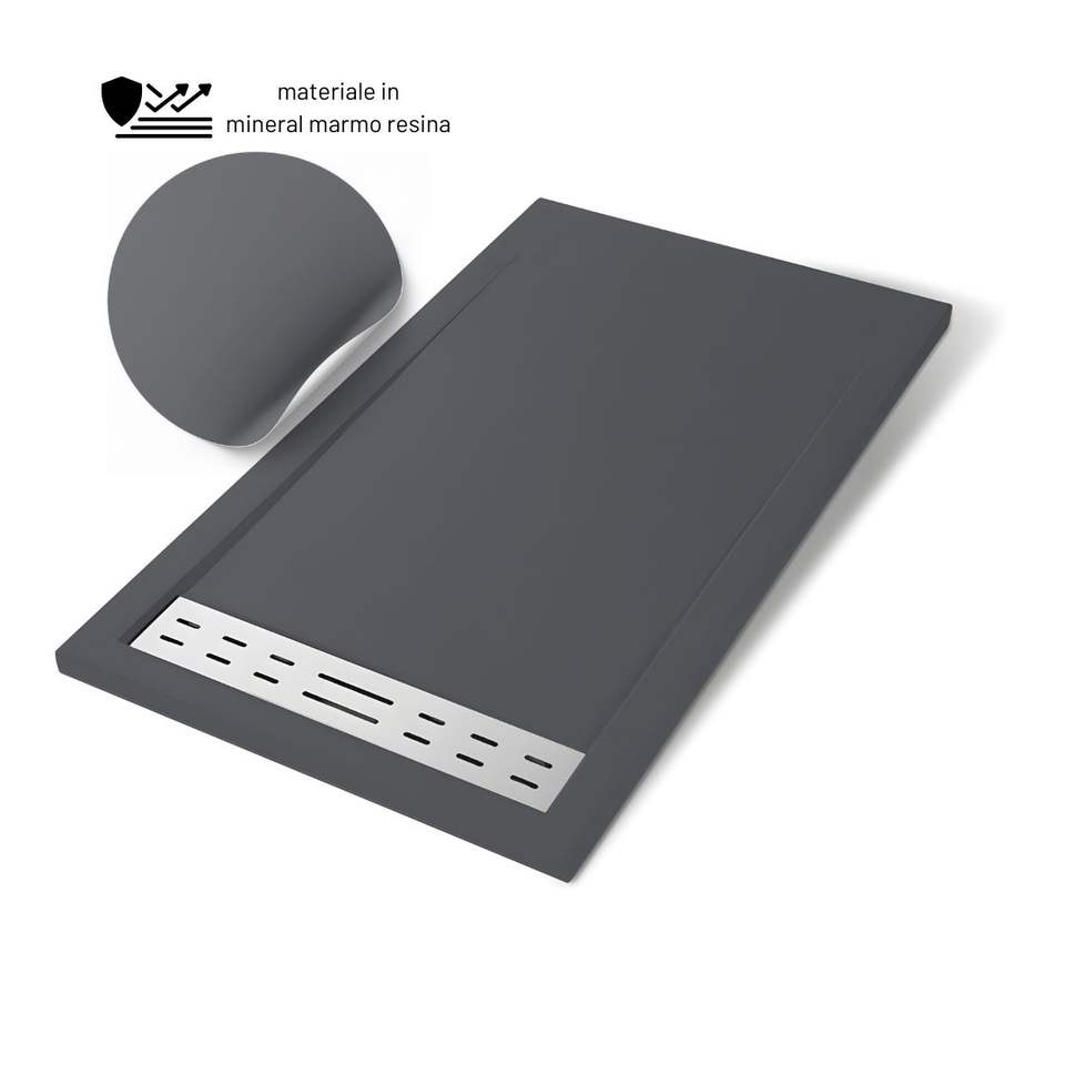 Piastra doccia antiscivolo in resina di marmo minerale tinta antracite misura H 4 cm L120 X P80 X H4 cm confezione 1 accessorio per doccia