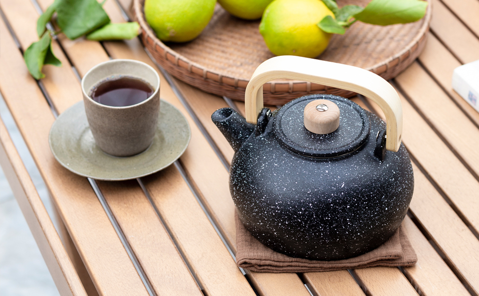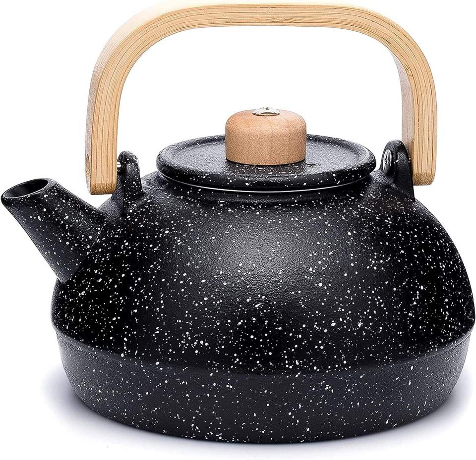 Manico in legno Anti-caldo bollitore stufa a legna smaltata interna grande capacità in ghisa teiera 36oz