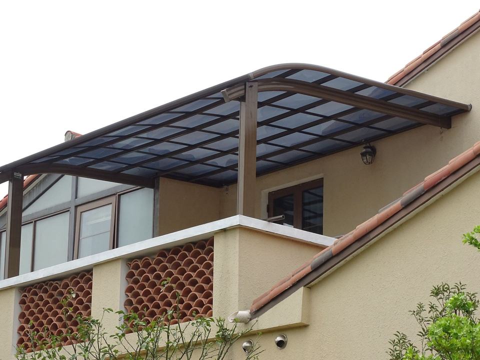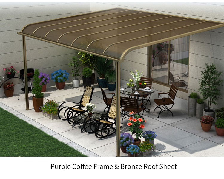 Coperture per Patio in Policarbonato Solido Anti-UV Impermeabile con Struttura in Alluminio, Set di Tende da Sole per Terrazza, Legno Trattato a Pressione Naturale, Garanzia di 10 Anni