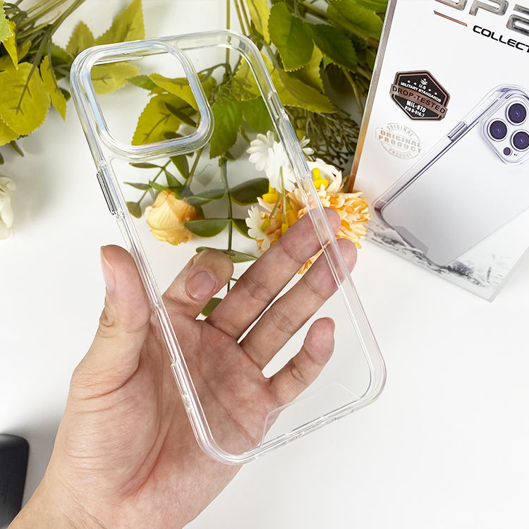 Custodia Anti-caduta in Acrilico Trasparente Effetto Cristallo per iPhone 15 14 13 12 11 Pro Max, Cover Trasparente Antiurto in PC TPU
