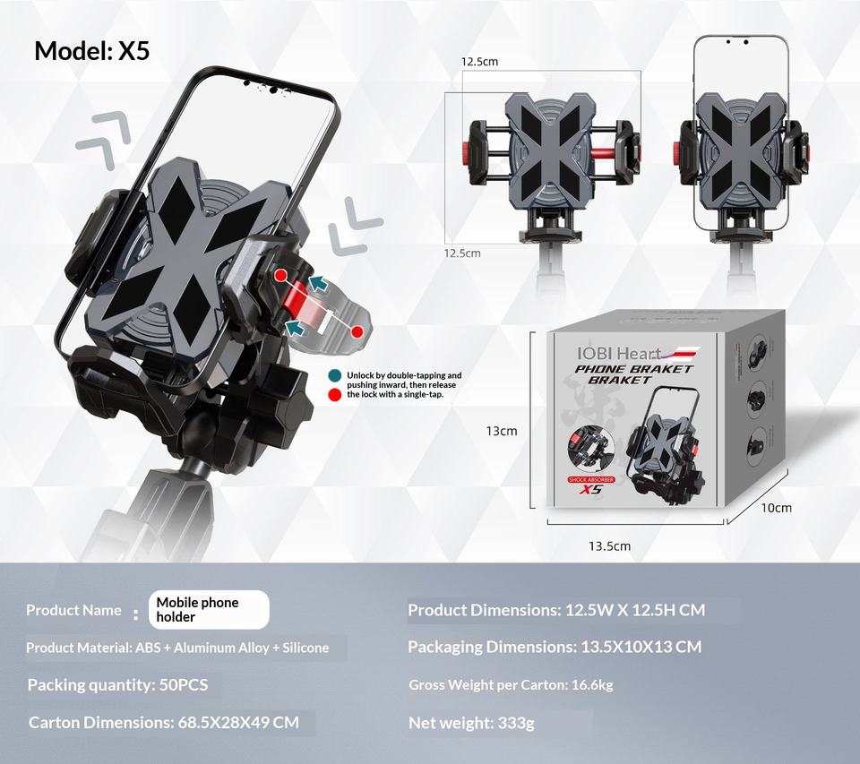 Supporto Antivibrazione per Telefono da Moto 2-in-1 per Manubrio e Specchietto, Staffa Antiurto per Navigazione Bici e Moto per Vendita B2B all'Ingrosso
