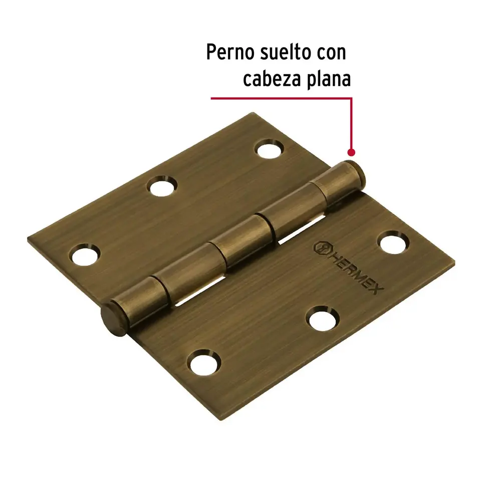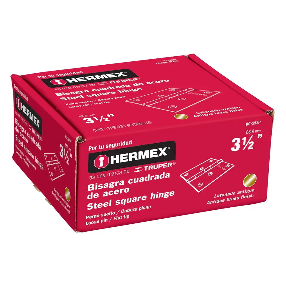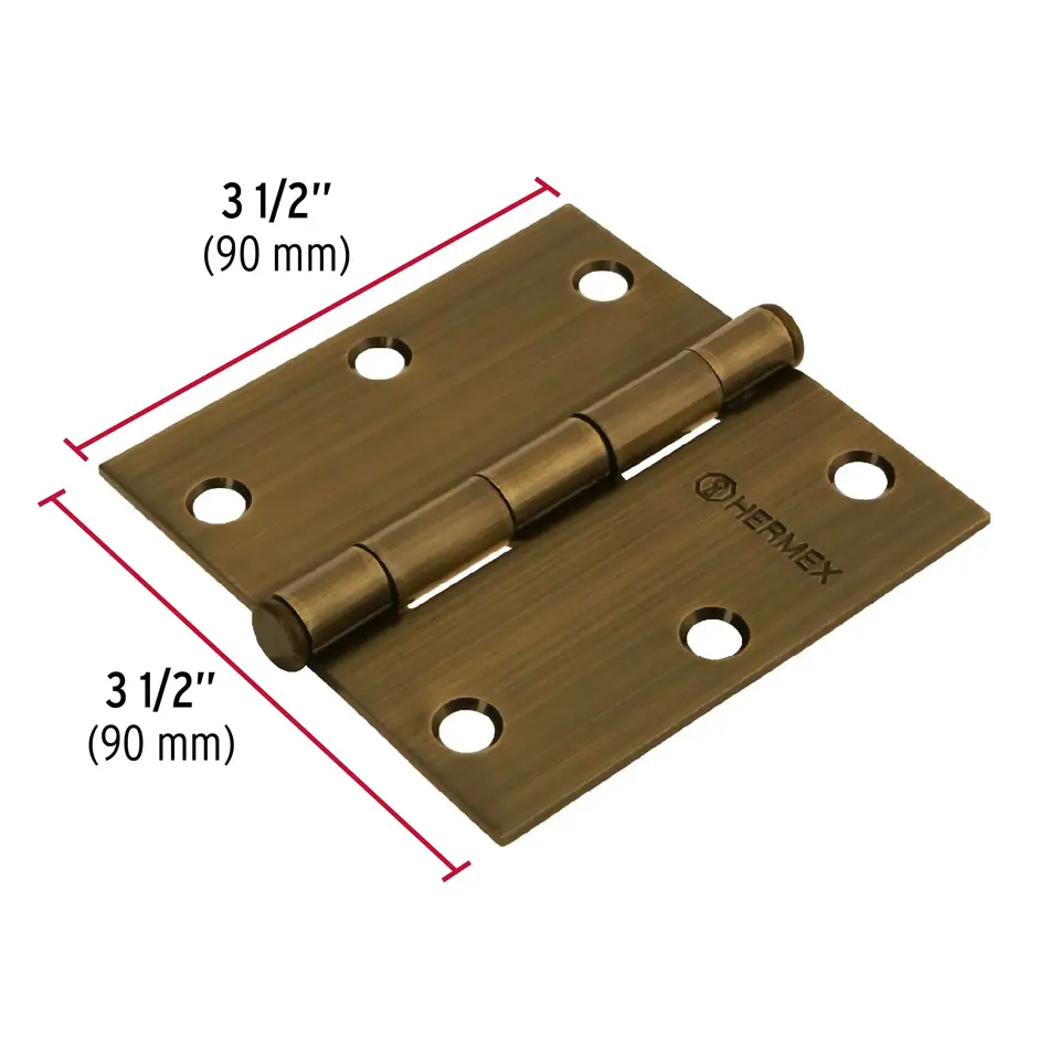 Antique Brass HERMEX 3-1/2\" Square Hinge Box of 10 Flat Head Door & Window Hinge