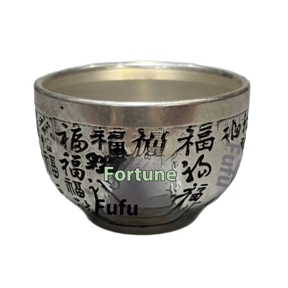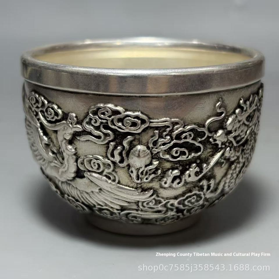 Antique Bronze Relief Baifu Cup Ornament Retro Dragon Phoenix Metal Craft Pin Decorations for Cup Parties Casting Engraving