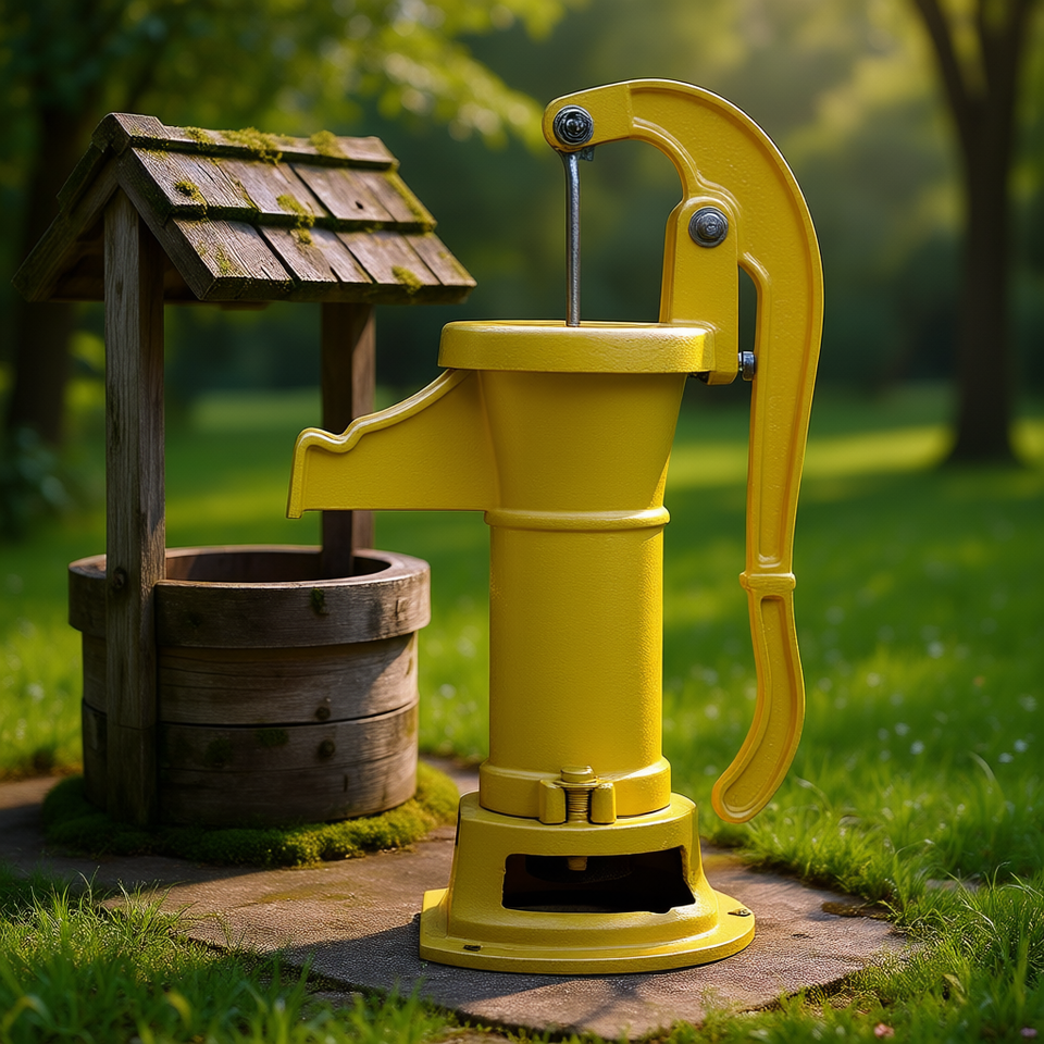 Manual Hand Water Pump 25ft Lift 1-1/4 NPT Yellow Easy Installation Garden Use