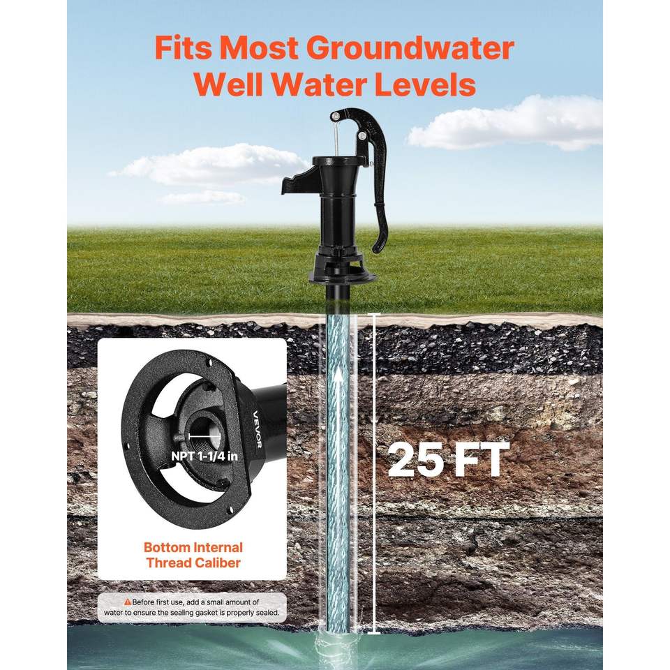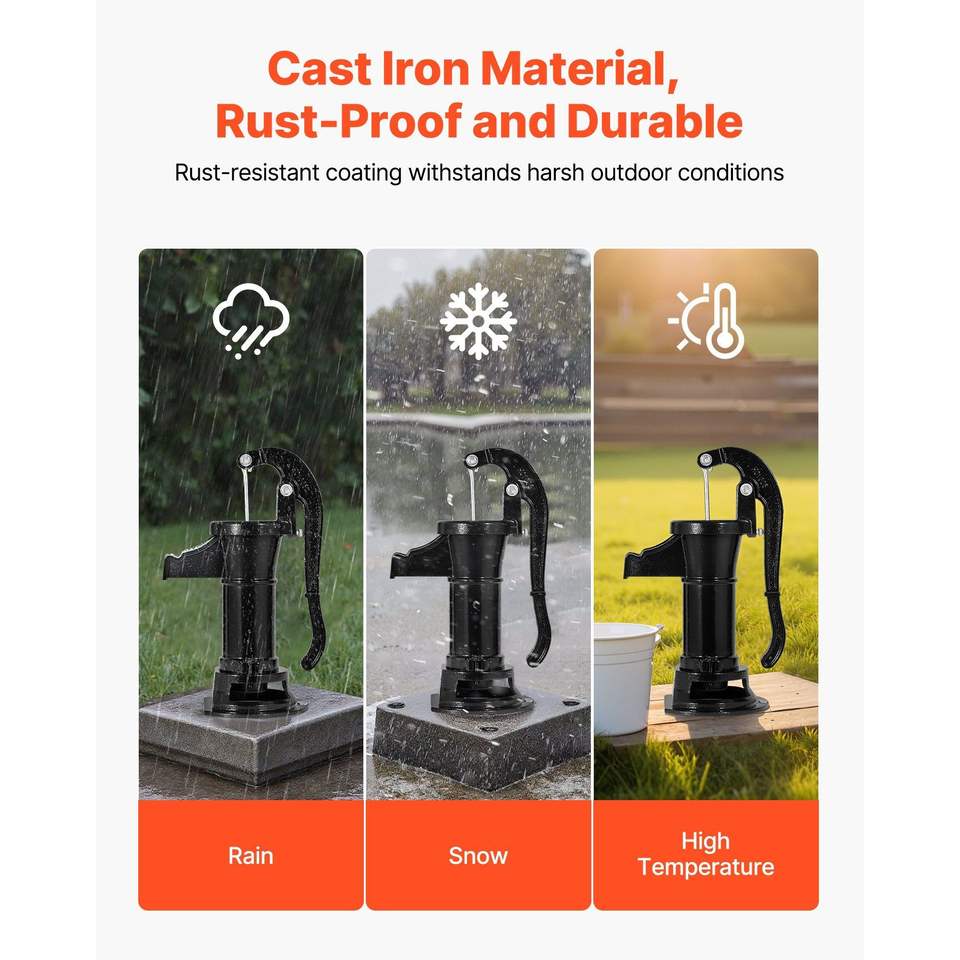 Pompa d'Acqua Manuale Antica in Ghisa, Sollevamento Massimo 25 Piedi, Connessione NPT 1-1/4, Facile Installazione