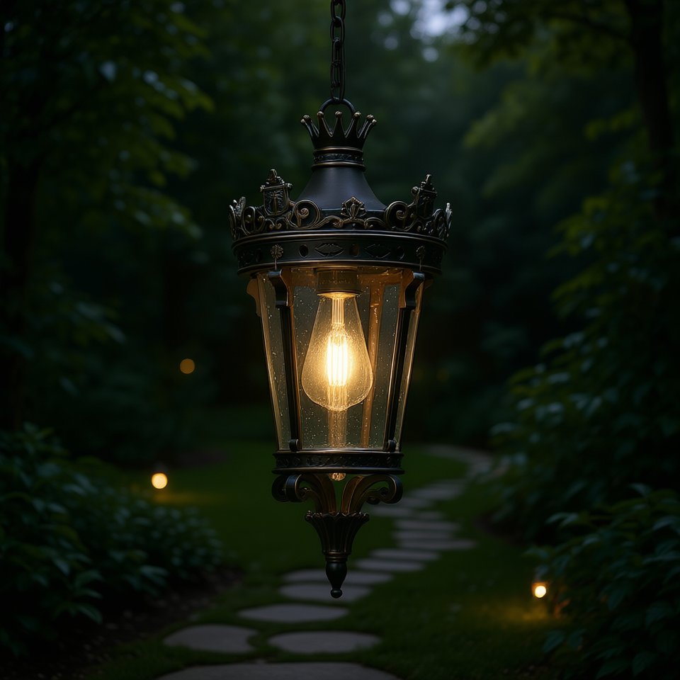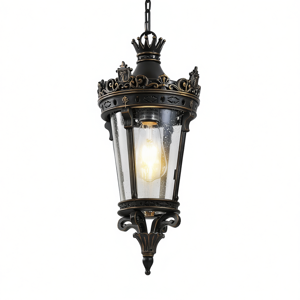 Antique Crown Outdoor Hanging Lantern 18 In H Waterproof Vintage Pendant Light Clear Glass Metal Garden Lighting