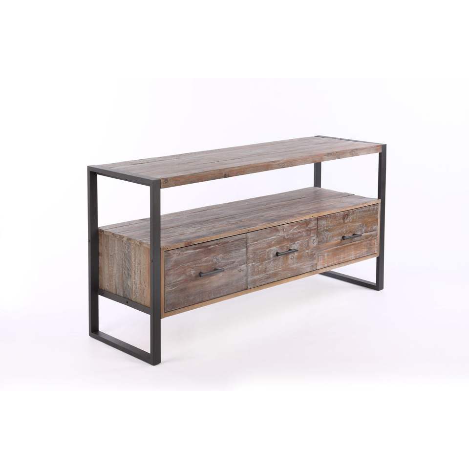 Mobile TV in Legno Recuperato con Finitura Anticata, 60 Pollici, con 3 Cassetti e Ripiano Aperto