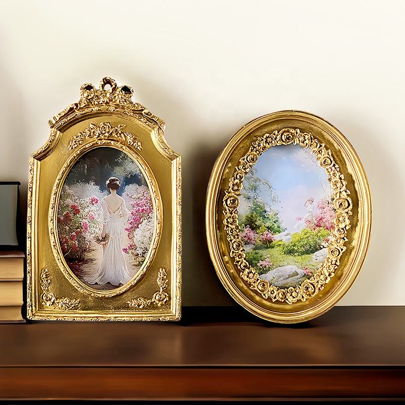 Cornice in resina oro antico 5x7 pollici cornice ovale ornata per foto da tavolo Display da parete retrò decorazione per la casa foto appesa