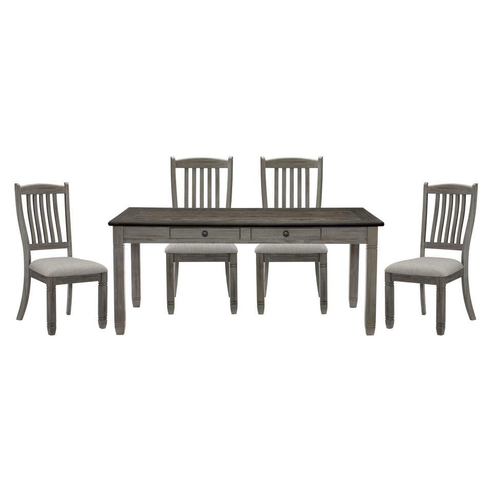 Antique Gray Coffee Finish 5pc Dining Set Casual Country Style Table 6x Drawers 4x Upholstered Side Chairs for Dining Room