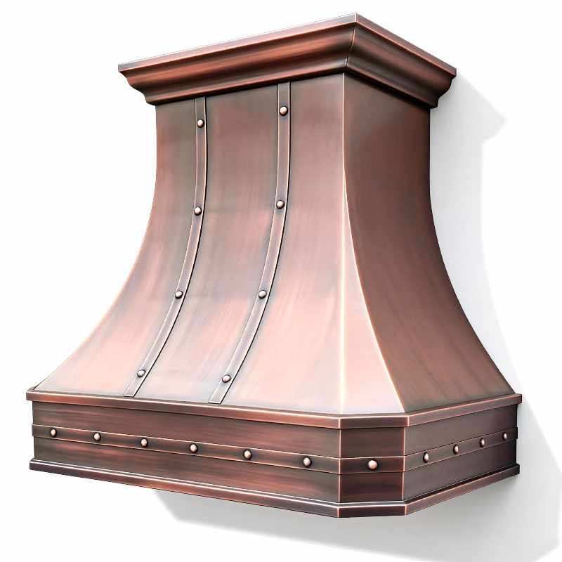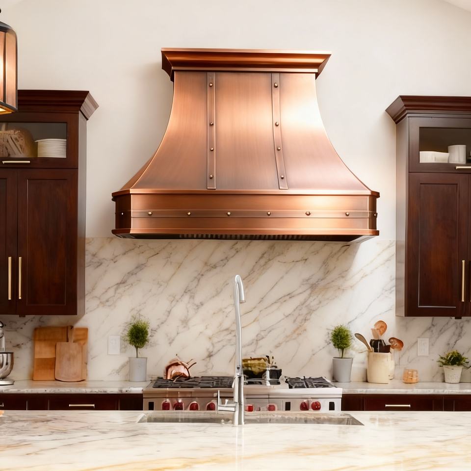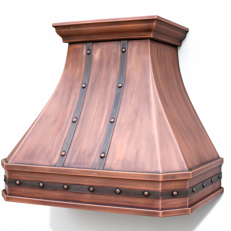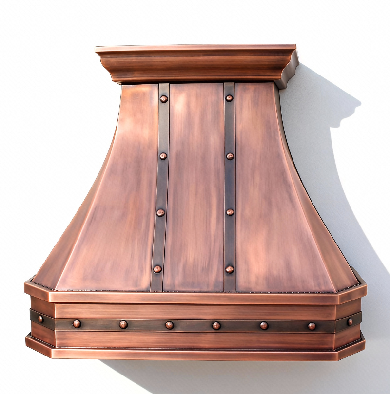 Cappa da Cucina in Rame Anticato Martellato a Mano per Ville di Lusso