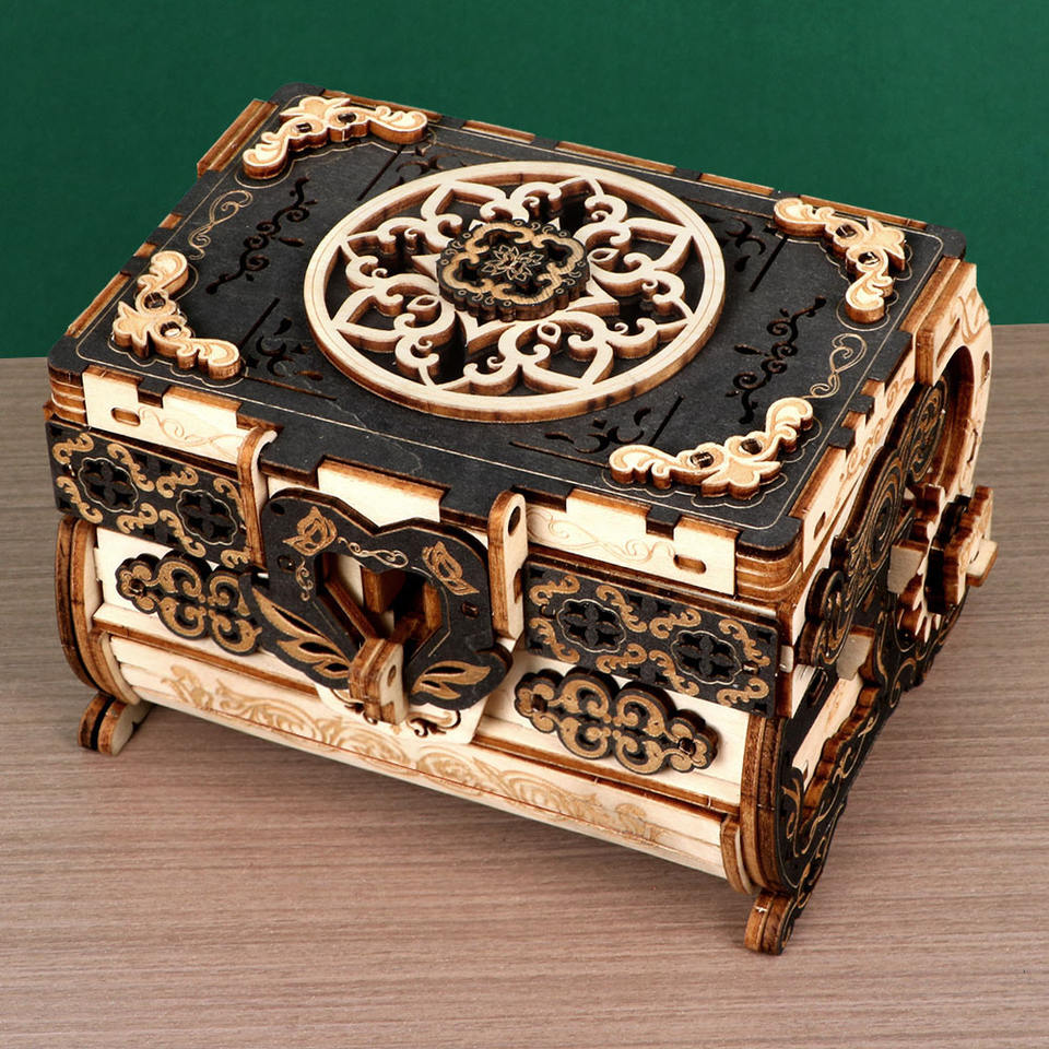 Antique Jewelry Box 3D Wooden Puzzle Adult Educational Cartoon Toy Handmade Gift Creative DIY Crafts MAYBEARS Buildings