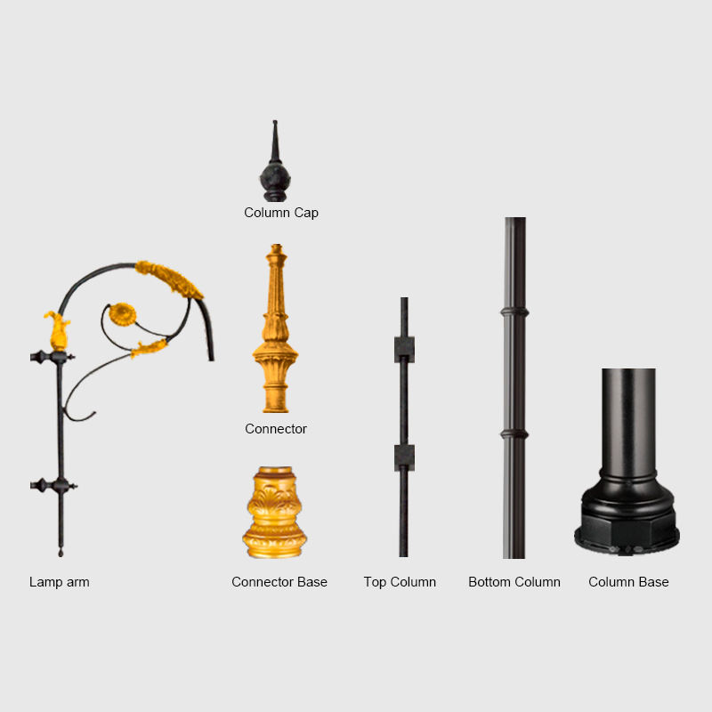 Nome del prodotto:Esterno antico in ghisa solare lampione led da giardino pole light
