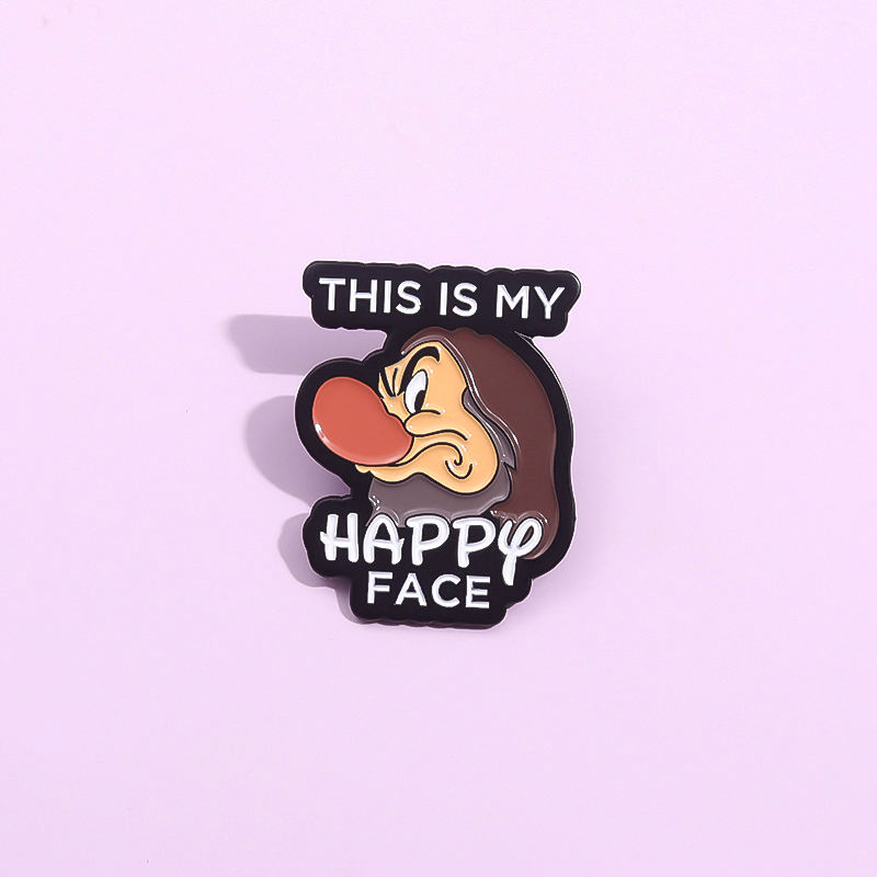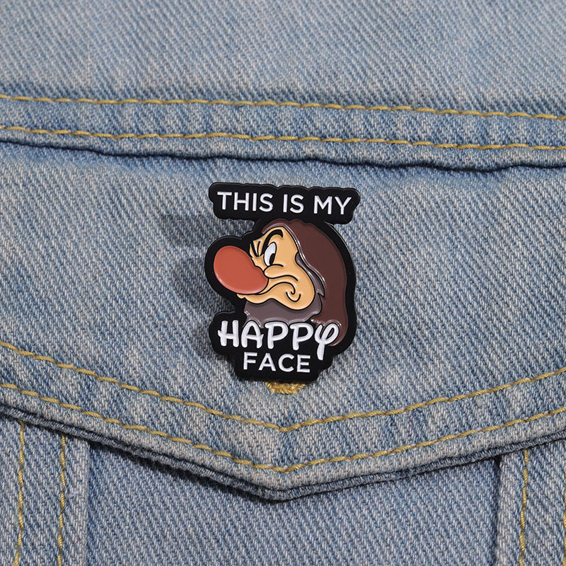 Antique Modern 'This Is My Happy Face' Enamel Pin Cartoon Anime Big Nose Dwarf Metal Brooch Lapel Backpack Badge Jewelry for