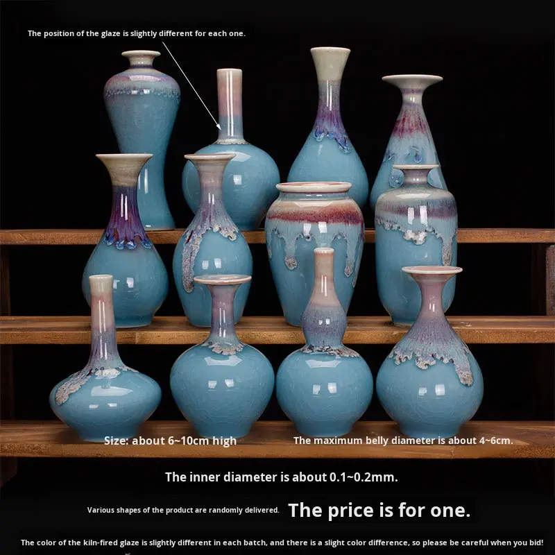 Vaso Piccolo Vintage in Ceramica HC063 con Effetto Forno per Decorazione Scaffale, Composizioni Floreali Secche, Ornamento da Scrivania e Ufficio