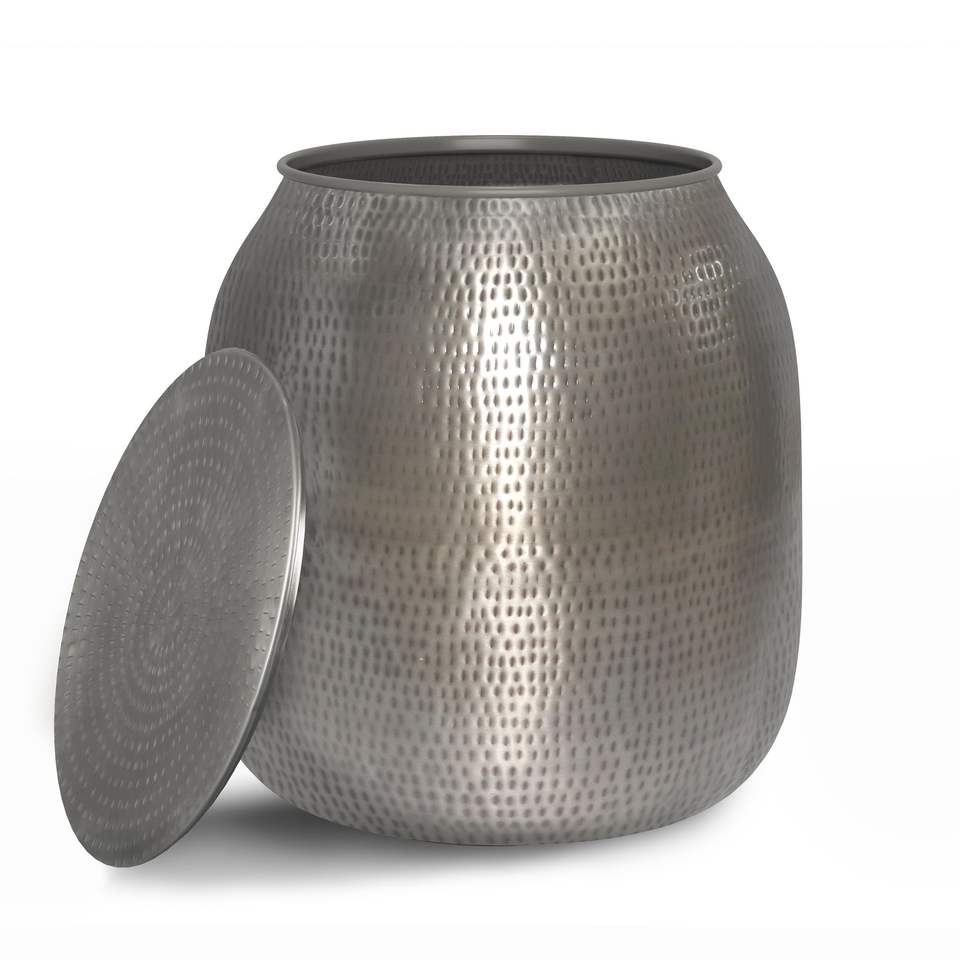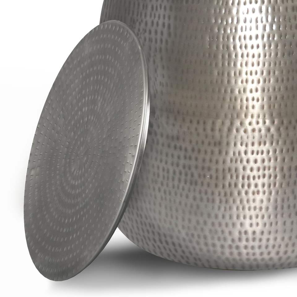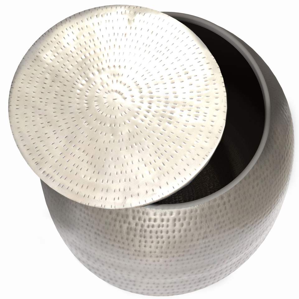 Tavolino d'Appoggio in Metallo Argento Anticato con Griffa, Elegante Arredamento per Soggiorno