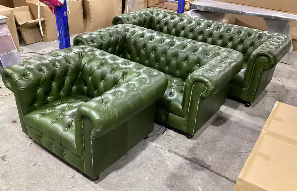 Defaico Divano Chesterfield in pelle anilina top-grain (1,0–1,2 mm) W95"×D38"×H29" per soggiorno, schiuma alta densità, 1 pz/box, MOQ 5