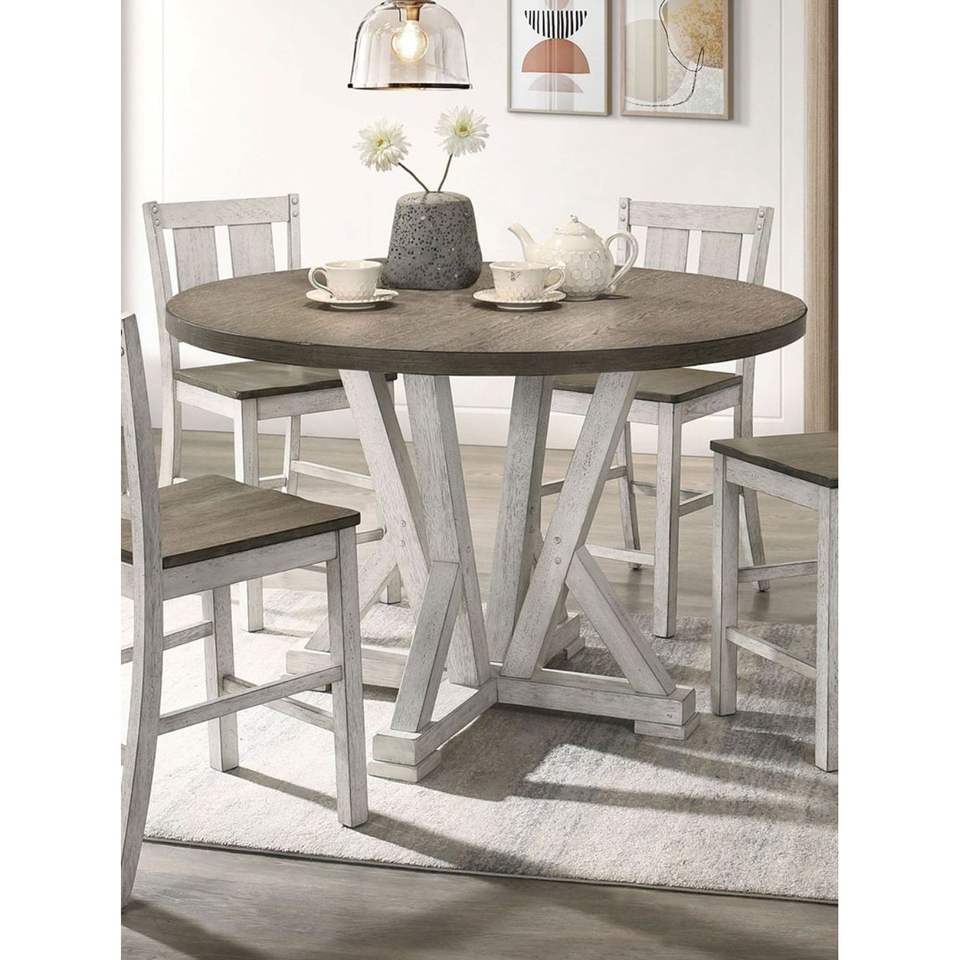 Set da Pranzo Rustico Bianco Anticato 5 Pezzi, Tavolo Bicolore con 4 Sedie per Arredamento Sala da Pranzo