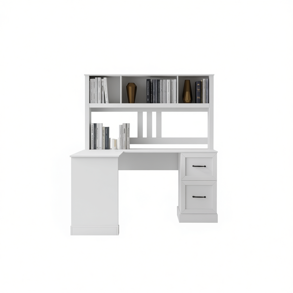 Home Office Computer Desk With Hutch Antiqued White Wood Finish Elegant Design