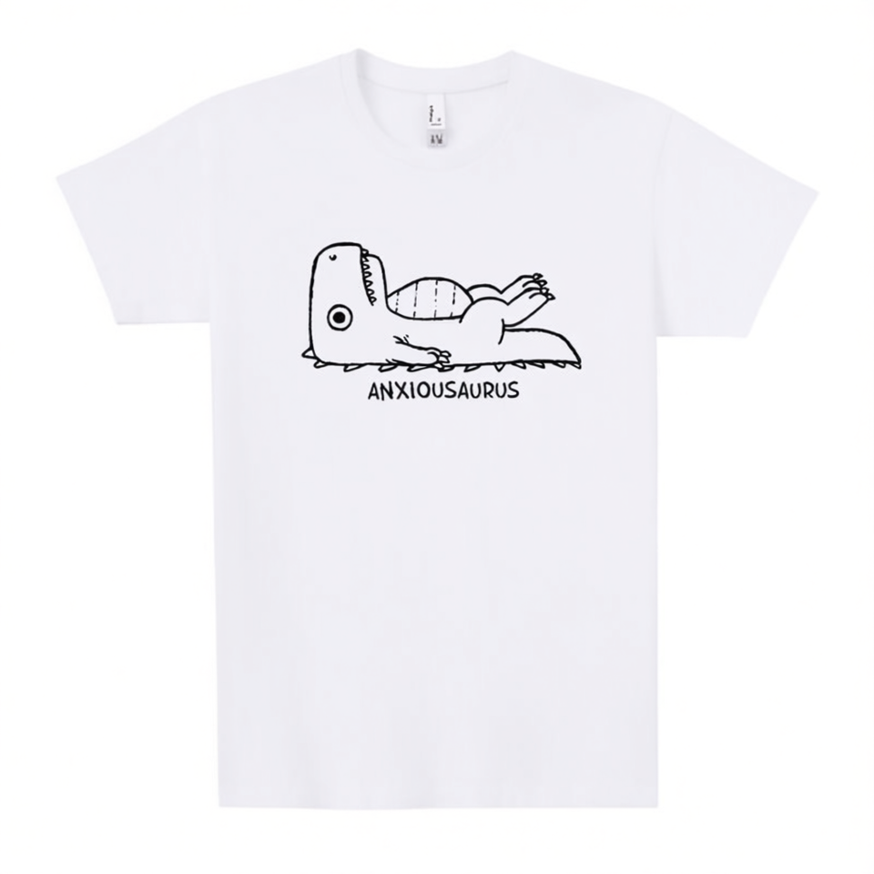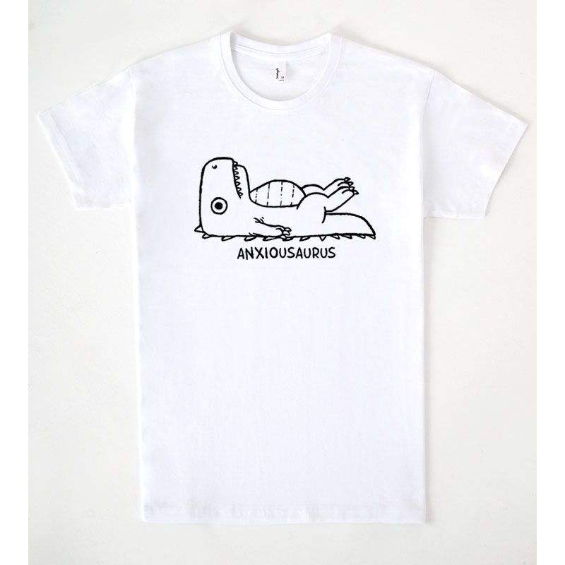 T-shirt Anxiousaurus bianca girocollo unisex promozionale