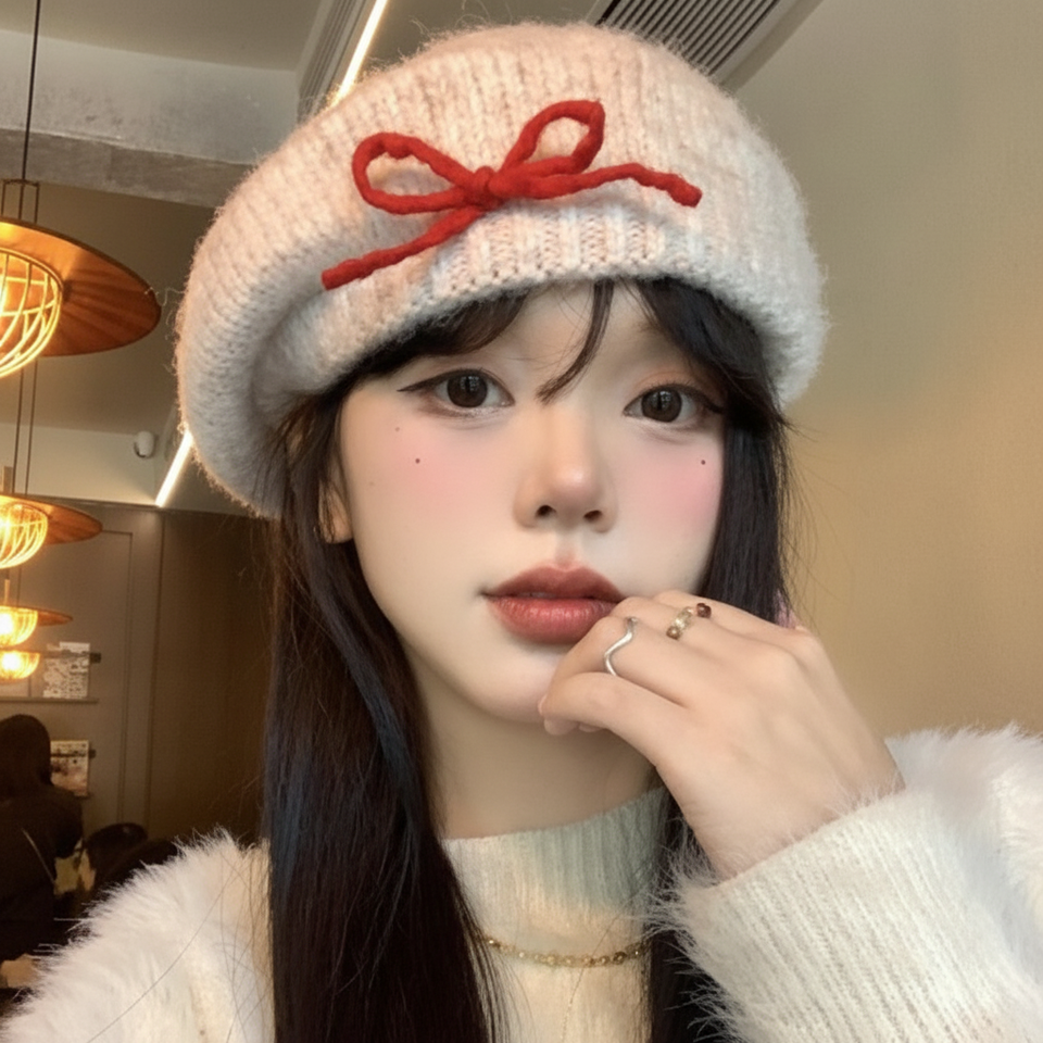 Cappello alla moda carino da donna con nastro da donna per il Design del viso da piccolo pittore autunno inverno