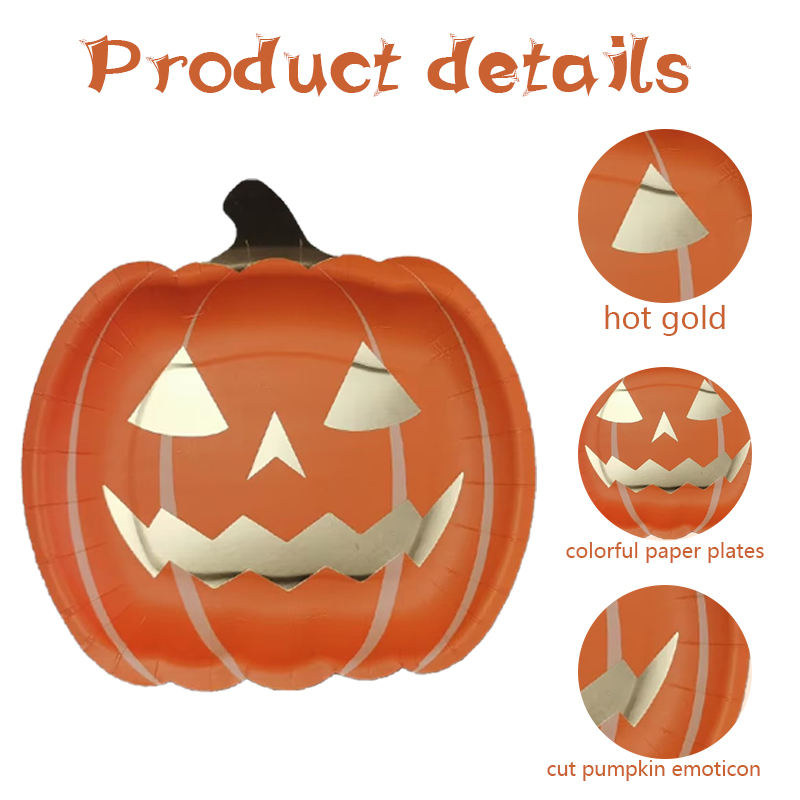 Anyou Golden Foil Cut Pumpkin Emotion Halloween Paper Plates 7 Inch Food Grade Available for Children Family Customized Supplies
