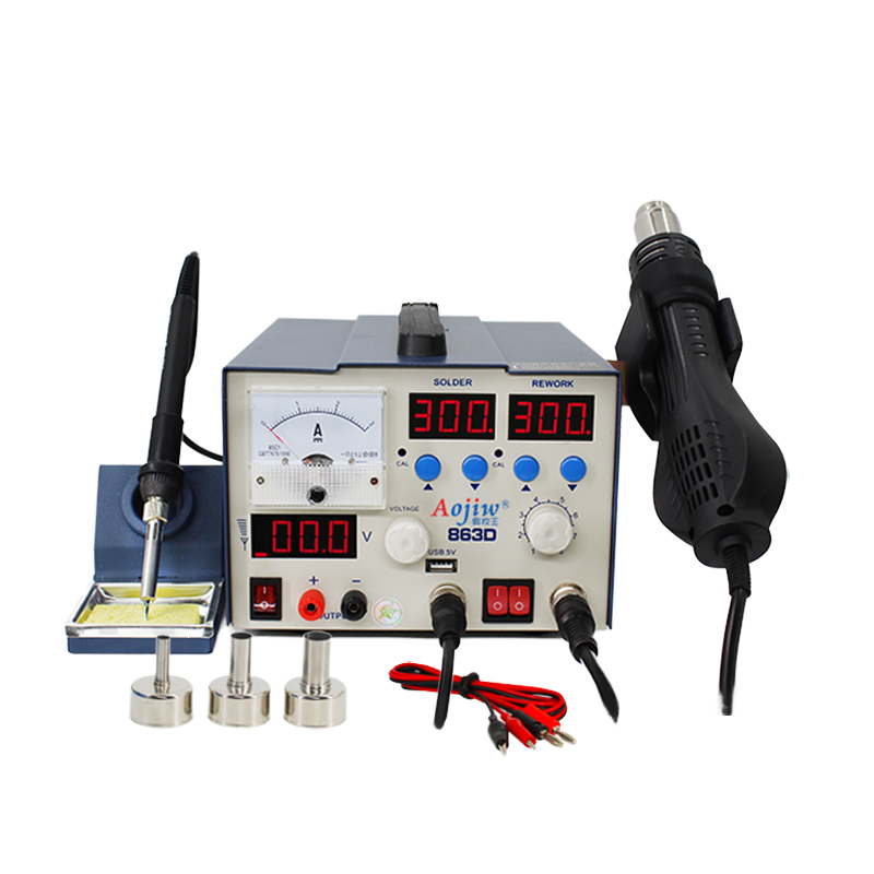 Aojiw 863D 3-in-1 Hot Air Gun Disassembly Welding Station Mobile Phone Repair 2A DC Regulated Power Meter ABS Material iPhone