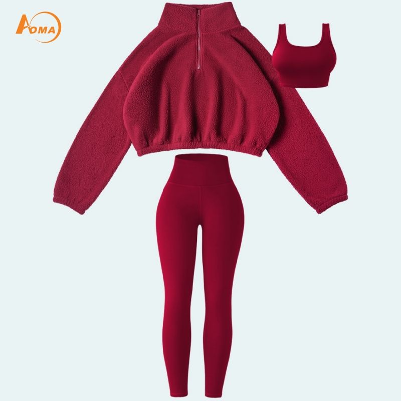 Aoyema Abbigliamento Sportivo Nuovo Set Sportivo ad Asciugatura Rapida Leggings e Reggiseno Senza Imbottiture Pullover Caldo a Maniche Lunghe Tuta da Yoga 3 Pezzi