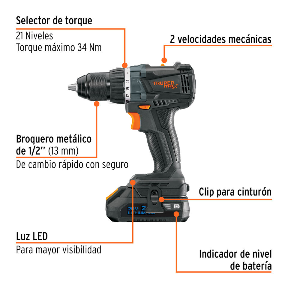 Ap Herramientas 1/2 In Cordless Drill 20V 2Ah Lithium Ion Battery Included Power Tool