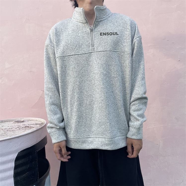 Abbigliamento Uomo Personalizzato Stile Streetwear, Felpa con Mezza Zip in Pile, Girocollo, Manica Lunga in Cotone Unisex, Felpa con Zip 1/4
