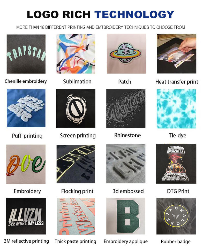 Ricamato, Stampato, Lavato, Perline di perline, Filato tinto, Legame tinto, Indumento tinto, Ricamo 3D, Dip Dye, su misura