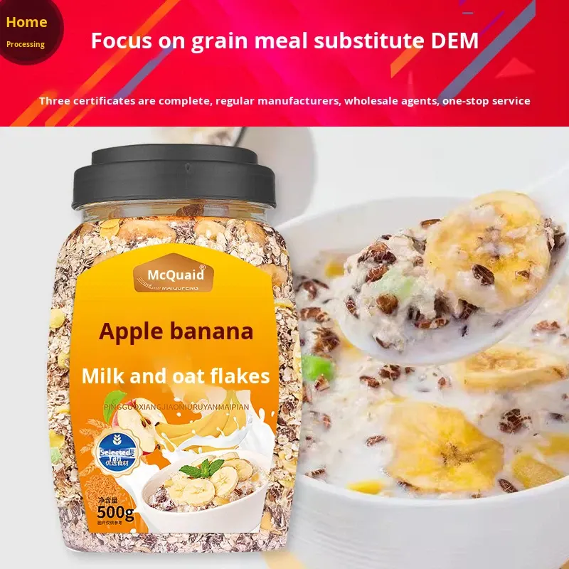 Apple Banana Milk Oatmeal 500g in Bottle for Constipation Greasy Diet Breakfast Instant Drink Meal Replacement Staple Food