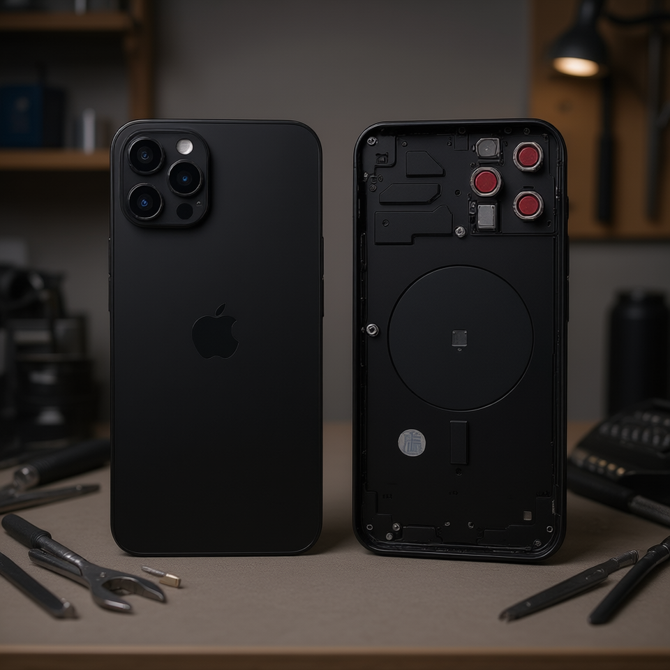 Cover Posteriore per Apple iPhone 12 Pro Max con Telaio Nero, Parte di Ricambio
