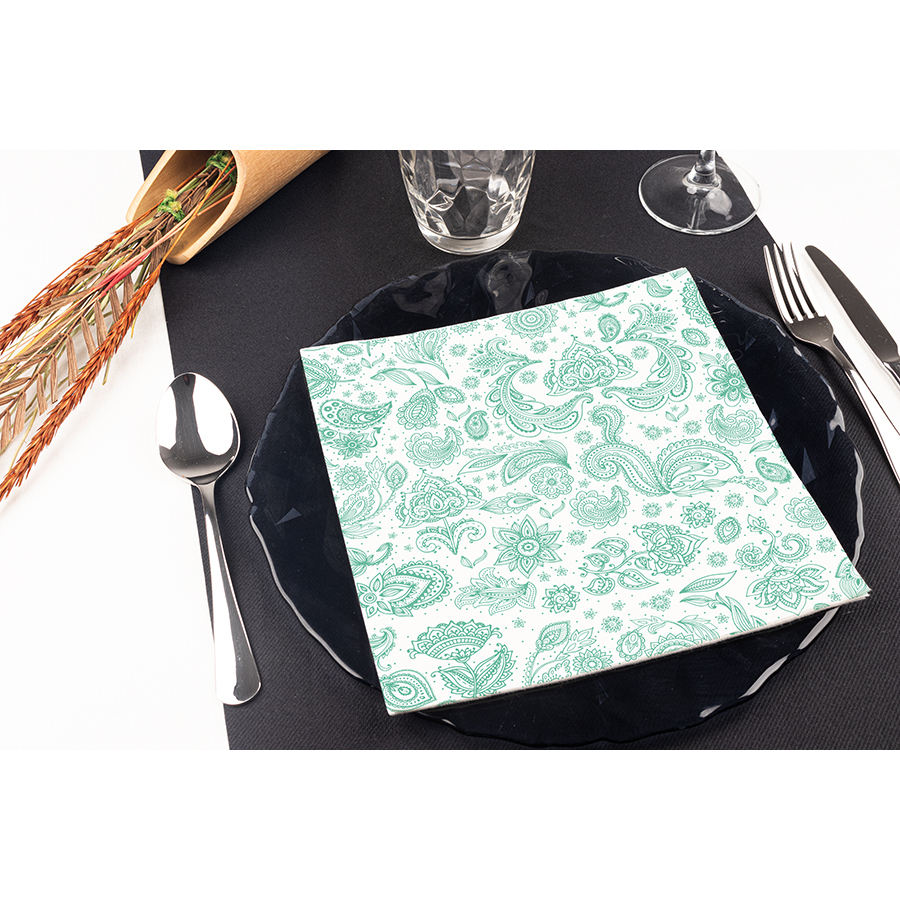 Aquamarine 48x48cm Yakarta Print Napkins Bambulux Eco 240pcs B2B
