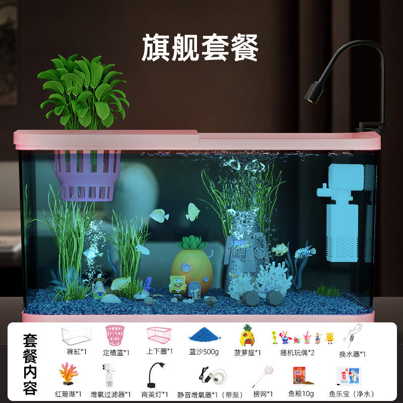 Filtro per Acquario con Generazione di Ossigeno Tutto-in-Uno, Rettangolare in ABS Acrilico, Design Cartoon, Paesaggio Ecologico con Piante d'Acqua Dolce, 60L Piccolo