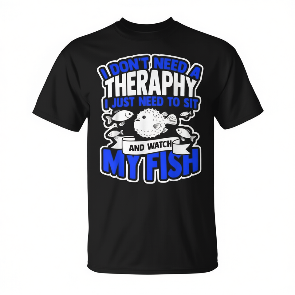 T-Shirt Unisex a Maniche Corte con Stampa Serigrafica a Tema Acquario e Pesci, Design per Adulti