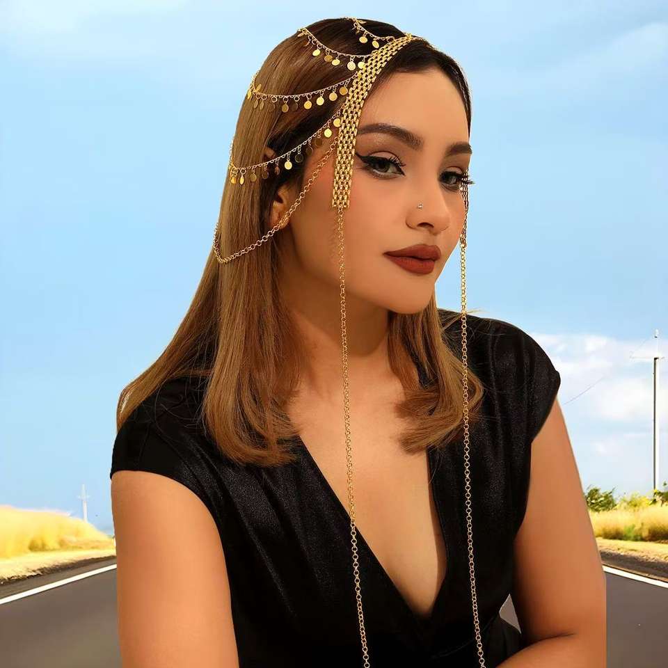 Testa di arabo gioielli in lega d'oro moneta con catena di nappe per capelli da donna copricapo da sposa accessori da sposa