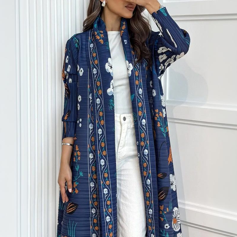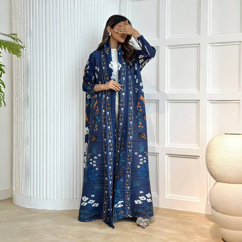 Arabian Dubai Travel Clothing Women's Printed Middle Eastern Robe Large Size Pleated Belt Casual Long Muslim Abaya Women's Robe
