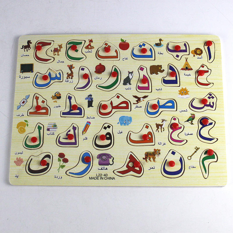 Arabic Alphabet Children Early Education Puzzle Wooden Toy Mushroom Tacks Hand Gripper Puzzle Cognitive Flat Puzzle
