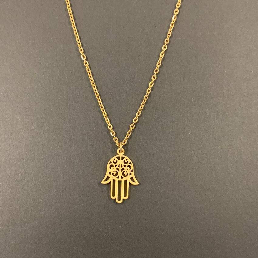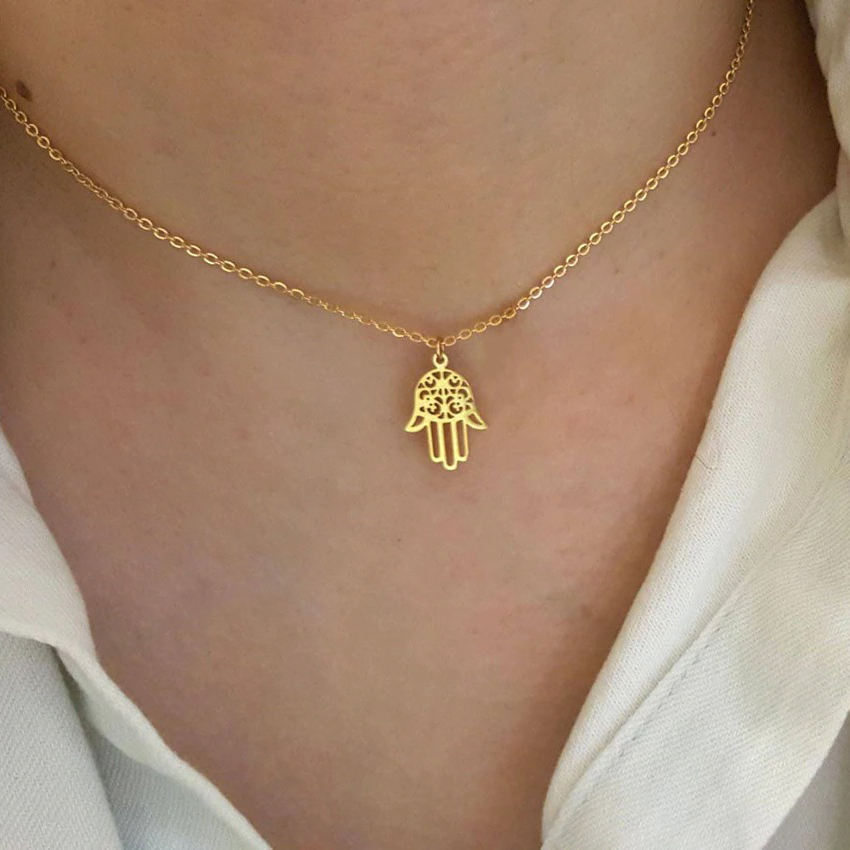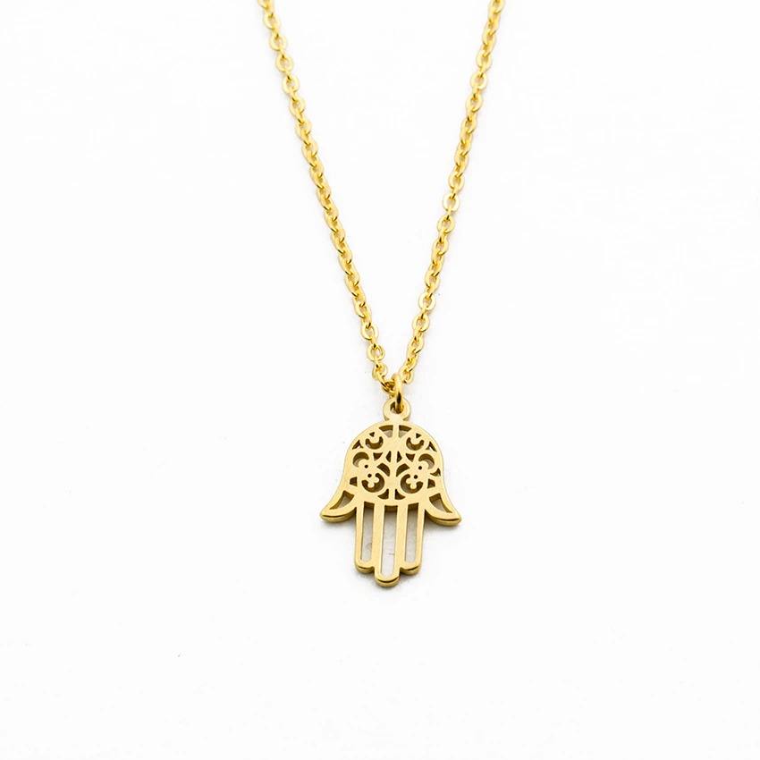 Arabo Di Soia Luna della Mano di Hamsa Pendente Della Collana Delle Donne Degli Uomini di Amuleto Acciaio Inossidabile di Colore Dell'oro Mano di Fatima Choker Gioielli Islamico