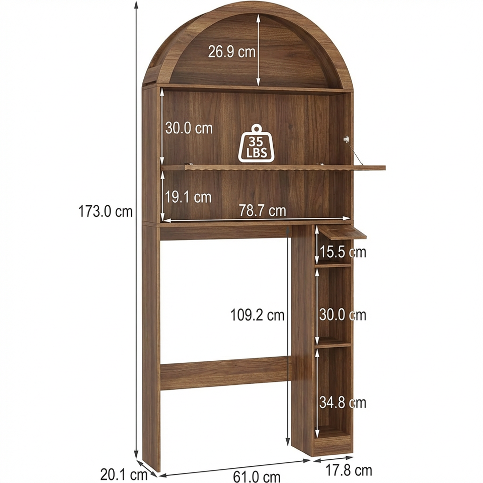 Mobiletto ad Arco Sopra il WC, Organizzatore Verticale Salvaspazio per Bagno e Lavanderia