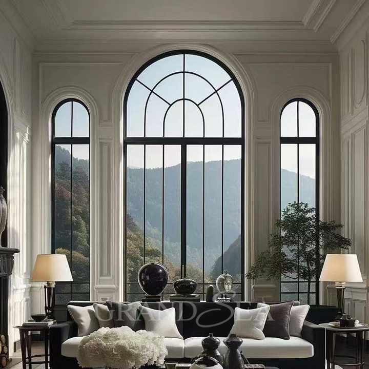 Finestre esterne commerciali ad arco ad arco con porta francese in acciaio fisso a buon mercato