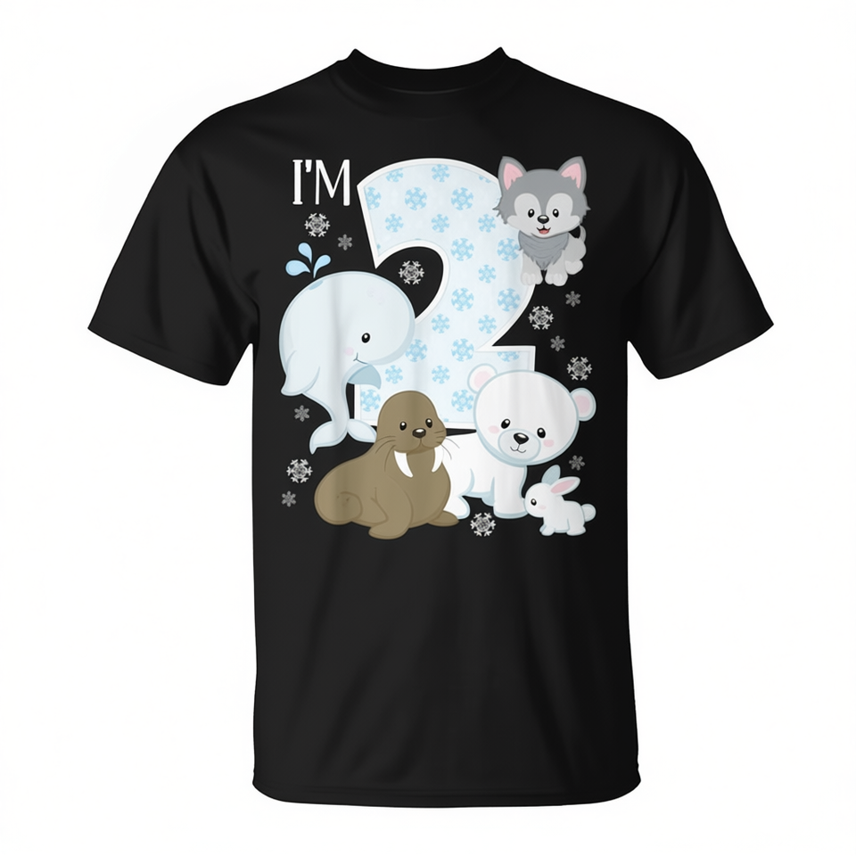Maglietta per il 2° Compleanno con Animali dell'Artico: Orso Polare, Morsa, Volpe e Tema Marino - Prodotto Promozionale
