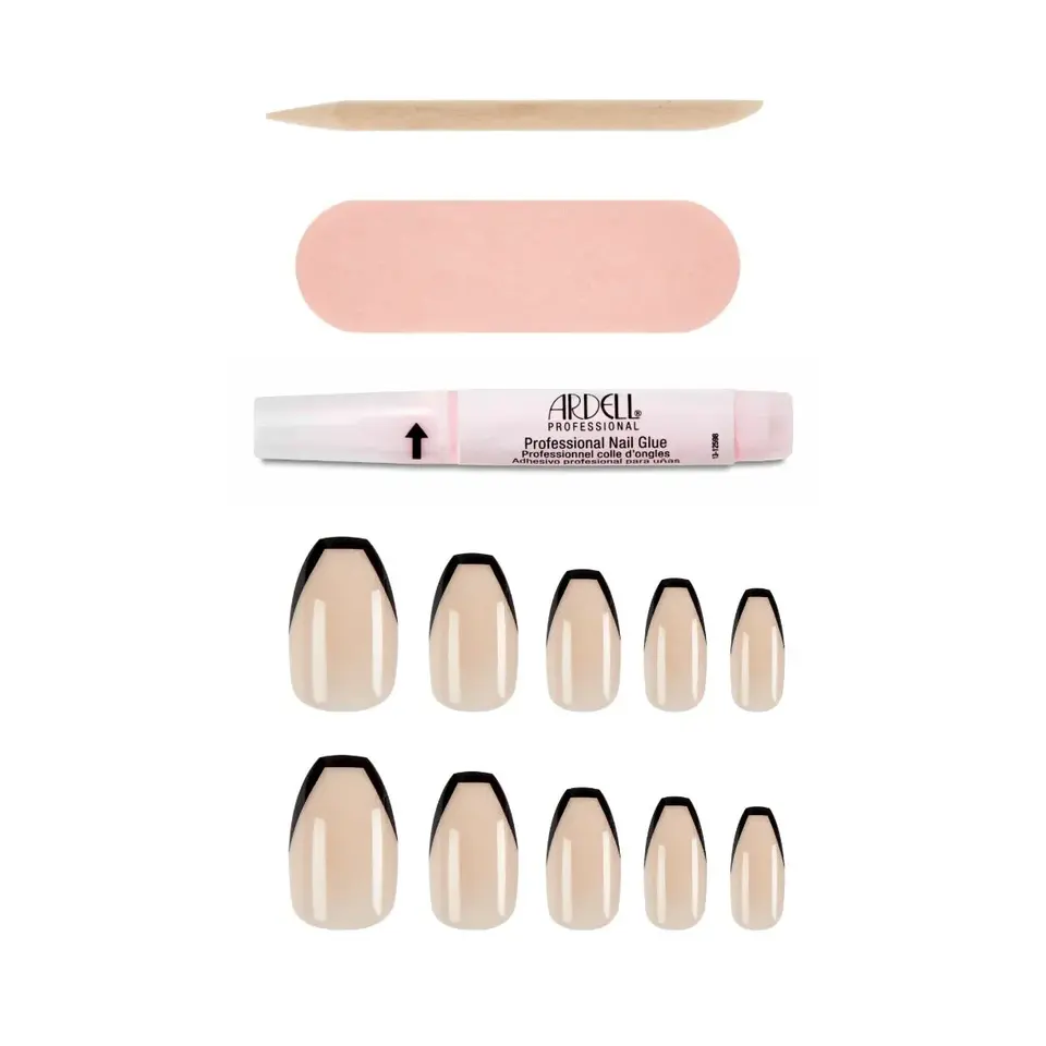 A5ard Ardell Nail Addict Eco French Noir Chic Black-Tipped Handmade Press on Nails Short Square Style-Fashionable Long Tips