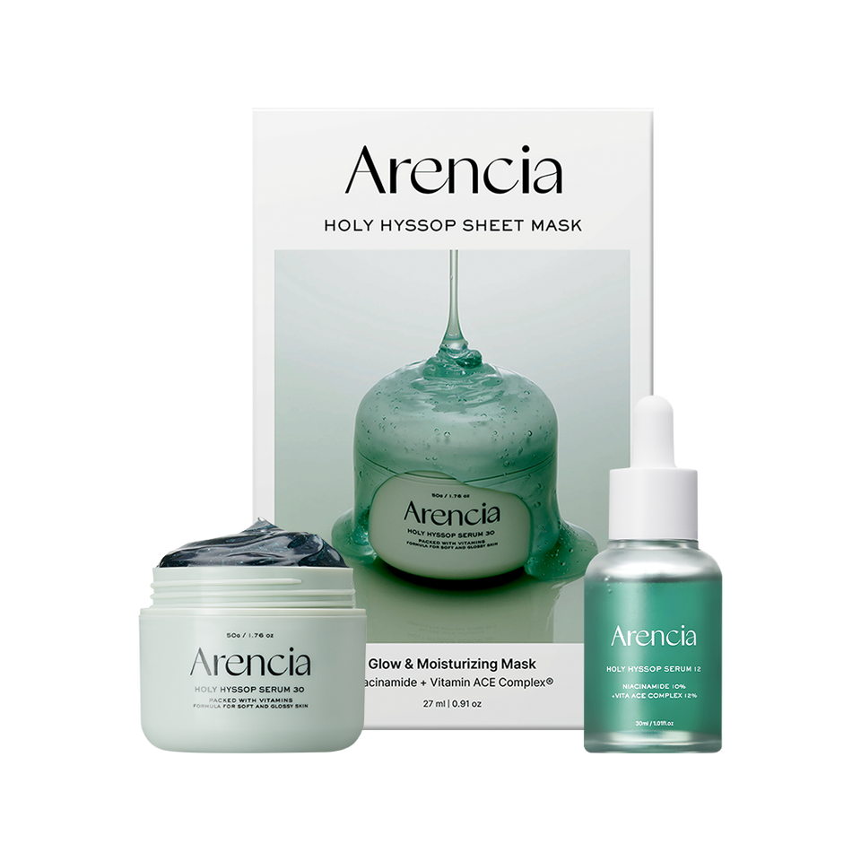 Arencia Holly Hyssop All-Care Set with Vitamin C 12ml Serum & 30ml Mask Pack for Face in Bottles