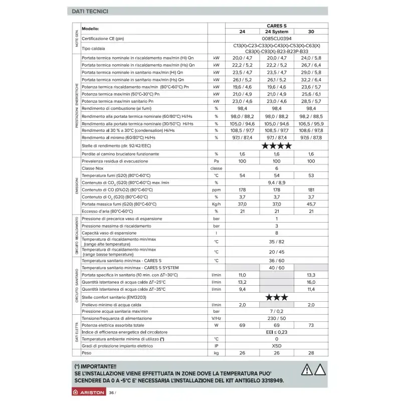 Ariston Cares S 30 kW Condensing Boiler for Home HVAC Systems Made in Italy Runs on Methane or LPG