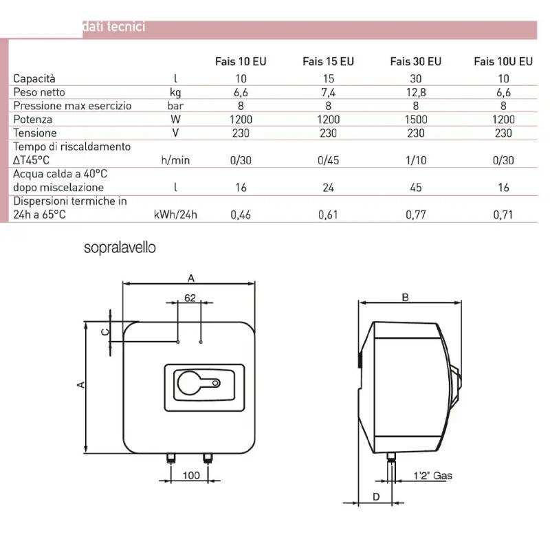 Scaldabagno Elettrico Istantaneo Ariston Fais da 10 Litri in Plastica per Installazione Sottolavello